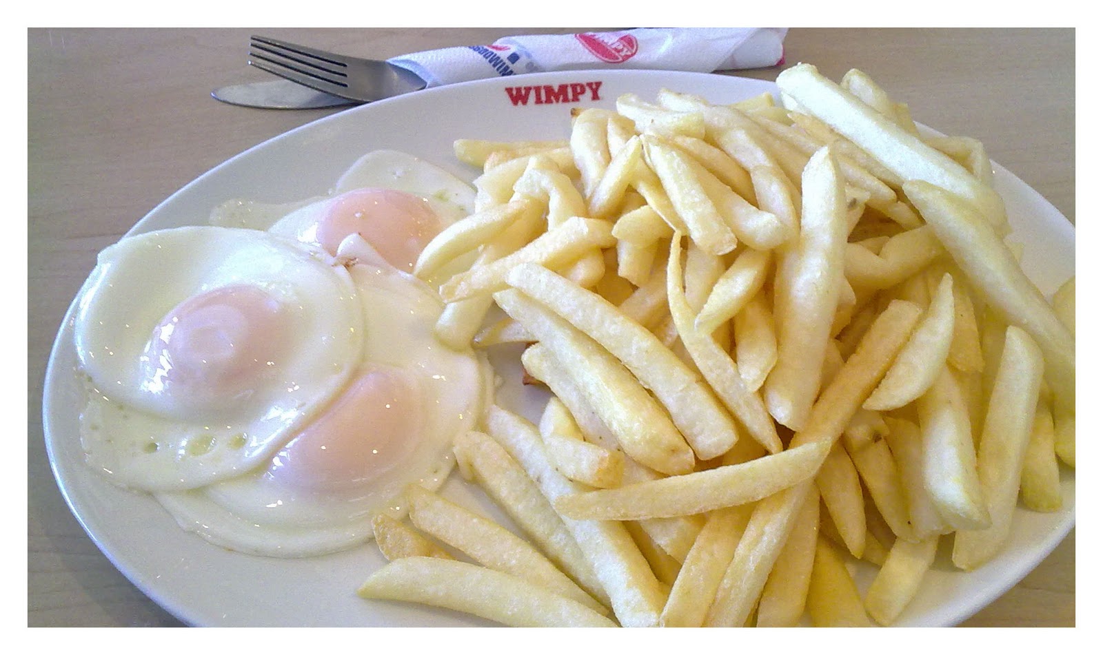 Sometimes I reward myself when I have done something good...like rewarding myself for making the most of a beautiful sunshine day. Yesterday the weather was awesome and I managed not only to get a good surf and kite surf session in, but I also cruised the beach on my skateboard and drank 2 litres of water instead of soda. This is when I treat myself, and what better way than with eggs and chips for breakfast. Was it not that words like "cholestrol" and "heart attacks" were swear words at my age, I probably would've treated myself more often. To finish it off I had a Creme Soda Float.... What a day.