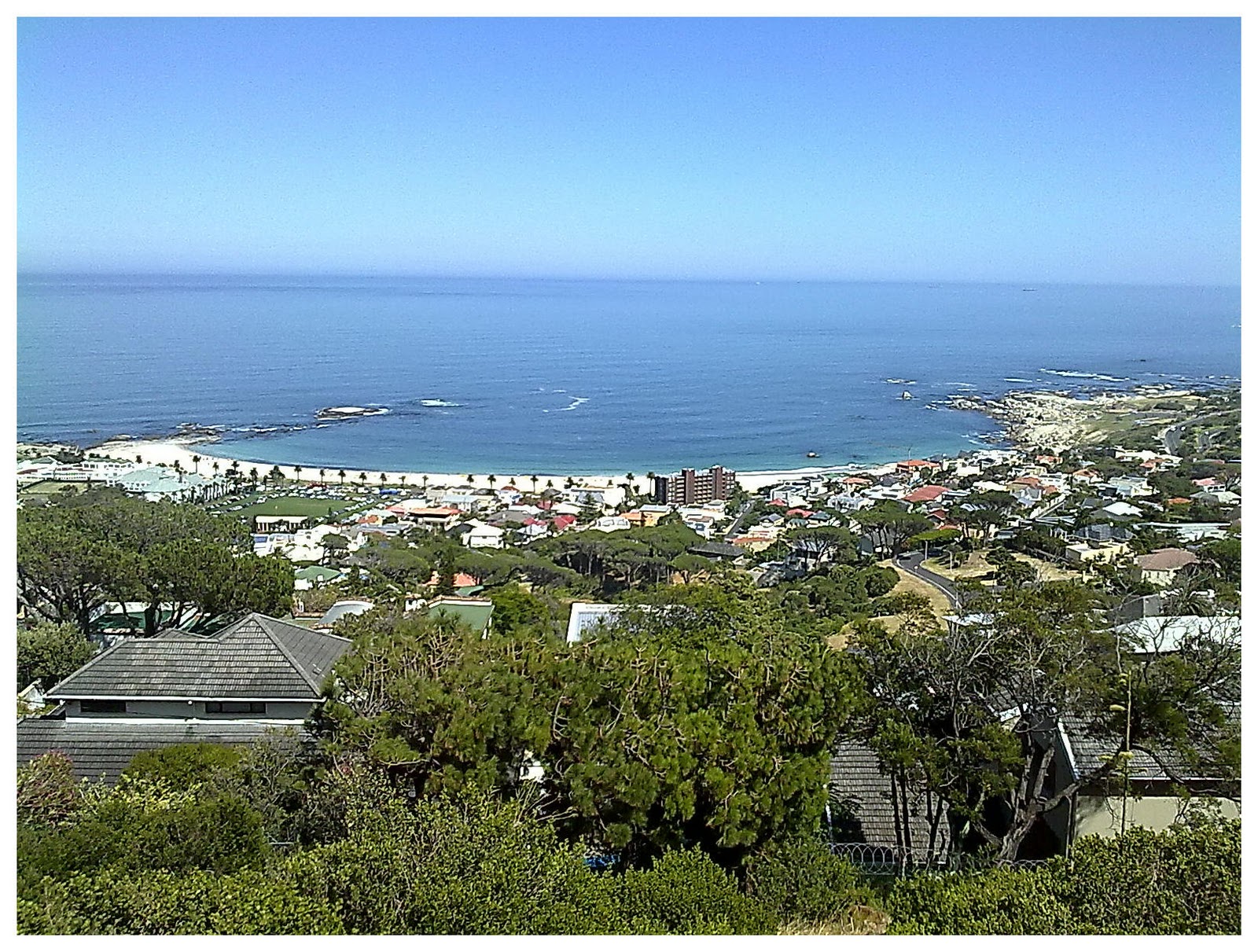Have you ever done something just because you can? Not that you have a need or anything to do it, but just because you are in a position to do it. Like kicking the dog for no reason. Ok, maybe not the best example. What about finishing your desert before your main meal just because no-one can really tell you at 43 what do anymore? Well, today I did something just because I could. I had to go to town to deliver my passport for yet another visa application. Instead of heading straight back, I decided to do it via a scenic route. Not that I had the need to do it, I did it just because I could. I had time on my hand, had no issues with traffic on my bike, the weather was great...and most of all, I found myself in Cape Town. So, I took a ride back via Camps Bay. What an awesome day it is out there. I didn't have any of my cameras with me, just my cell phone, but I managed to get one of two relatively descent pictures of Camps Bay. Sometimes we need to aknowledge the fact that we have so many privileges and just make use of them because we can. I did today and wow, what a feeling....