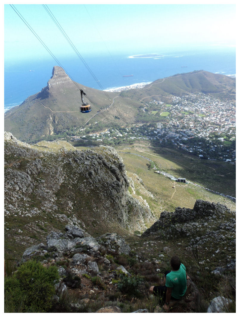 We reached the cable car station at around 11 am. Taking into account the many stops we had, it probably could've taken us only two hours to get to the top. Table Mountain is a 1000 meters high, but you do only start climbing half-way up. Platteklip Gorge is the easy way up, India venster the slightly more interesting and daring way to go. All in all we enjoyed it and managed to shorten her bucket list. My list? Yeah, I still have a few things to do....Oh, and as we were going down with the cable car we saw that the paragliders were still flying. Next time....