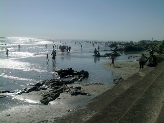 Unfortunately this picture was taken against the sun, but one can still see the amount of people on Big Bay beach. This is where we usually bring our little surfer boy to come play in the rock pools because there are usually not many people coming to this beach, but today this placed was packed as well. There is one thing about the Atlantic Coast that we cannot rave about and that is the cold water. Today people were actually forced to get into the water. When I took this picture the temperature on my bike's thermometer reading was 35.5 degrees Celcius. Cape Town is really a wonderful place and when the weather plays along it becomes an extraordinary place.