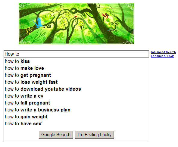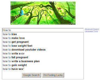 This morning I was looking for a way to put an umlaut (the two dots above a letter) on the "u" so that I could spell "reünie" ("reunion" in Afrikaans) correctly in my Facebook comment (this was all done before work, I promise). I started my search with "How to" and before I could type the next word, Google as always popped up a few suggestions of searches that are frequently done by users. I had to laugh when I saw that contrary to what I believed comes natural to every human being, some people still don't know how to kiss, make love, have sex, get pregnant or gain weight. I was however relieved to see that some people do some sensible searching as well...how to write a CV or a business plan. And then there was the age old question of how to lose weight fast. As far as I know that one does not really have an answer....