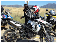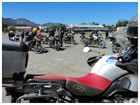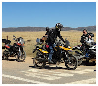 After Geoff assured us that he will stop and warn us when the road becomes too sandy, we mounted our fired-up engines and hit the road to Piketberg. I left my nice camera at home knowing that these guys don't stop for pictures. Armed with my small point-and-shoot I was hoping to take a few snaps in the ride, but what was soon to follow made me realize that this was nothing but wishful thinking. It was only at the Slent Pad (Slent Road) where we hit the first gravel road that I have never been on before. It was actually a good thing that this was the case, because I would not have gone on this trip had I known what was lying ahead. I don't know Geoff's definition of "too sandy", but for me it felt like we were riding on the beach. Geoff never stopped to warn us here and never after this either. At this point I was about 9th in line, and my only consolation was that if the 8 riders in front, including Veronica, could stay on their bikes, then why should I be any different? A few kilometers down the road emerging from the dust I saw a couple of bikes had pulled off. I also stopped, relieved that I could get my feet on stable ground again. It was Gustav* who decided that he is going to let out some air from his tyres to see if he could have better control over his bike's floating feeling. Boy, what was I supposed to do if Gustav cannot handle his bike in these conditions? At this point Andrew also caught up and I used the opportunity to ask him how he was doing. "What?", he said in disbelief, "I actually pulled off because I thought I had a flat front tyre!" OK, I was not the only one riding on "jelly" and not alone in this either, which made me feel a bit better. Some of us got on our bikes again and rode on to meet the other guys who were waiting at the end of this gravel section.