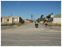 Before we rode into Piketberg, Geoff decided to do another loop through some of the local farms. By now I was 4th in line, hoping to avoid most of the dust and riding like a maniac to keep up. The road here was really bad (for me as a novice of course), and if there was any chance of seeing my arse, then this was it. I think the whole group at this point had some elevated levels of confidence and adrenalin and we were really going at it. Sitting down, standing up, whichever position she preferred ("she" is of course being my bike). When we finally arrived at Piketberg for lunch all of us except Geoff looked like we were in a dust fight. I was thinking about the benefits of riding in a group like this. This is not your average Sunday breakfast run with some nice pictures along the way. This is confidence building like you will never experience riding alone. "Groups rush in where angels fear to tread", I was thinking to myself. Even the less-fortunate at the Piketberg Spur noticed us when we pulled up. Had they only known how much fun we had getting there, they would've dropped everything and started surfing the Internet for bike prices.