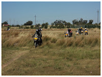 From the end of the Slent Pad we were on tar on our way to Wellington. Before Wellington we turned off towards Malmesbury. Not much further on we hit another gravel road. This is basically where I lost all my sense of direction and location. It was farm roads and more farm roads. I had no idea where we were, I was just following the dust through the farms like the Israelites were following the cloud through the desert. Let me tell you about the dust. Geoff mentioned that the strong wind that was expected might be good as it blows the dust from the road. What Geoff did not mention was that most of the road would be directly in line with the wind, leaving us smack bang in the middle of the dust cloud. In my rear view mirror all I could see from time to time was another orange light. This amber light works perfect in these conditions, one of the few "extra" gadgets I have on my bike. I put it on some time ago, even though at that point I only thought it looked cool. Now I am that glad I did. In front of me I could see pretty much NOTHING. It was just dust. Not only is this very unpleasant when you inhale particles instead of air, but you cannot see oncoming traffic, the guy in front of you, potholes on the ground or farm animals who also believe (like many of us) that the grass is greener on the other side of the fence. Fortunately there weren't any disilusioned cows on the road. I think some animals actually got nervous by what looked like a sand storm scene from The Mummy, fast approaching and accompanied by a lot of noise. . I was concentrating too hard on my own predicament to worry about some soon to be tough braai meat hitting the shelves in a couple of month's time. For obvious reasons I could not take any pictures of the dust while riding, but my other pictures will certainly prove that besides the dust it was an awesome day nonetheless.